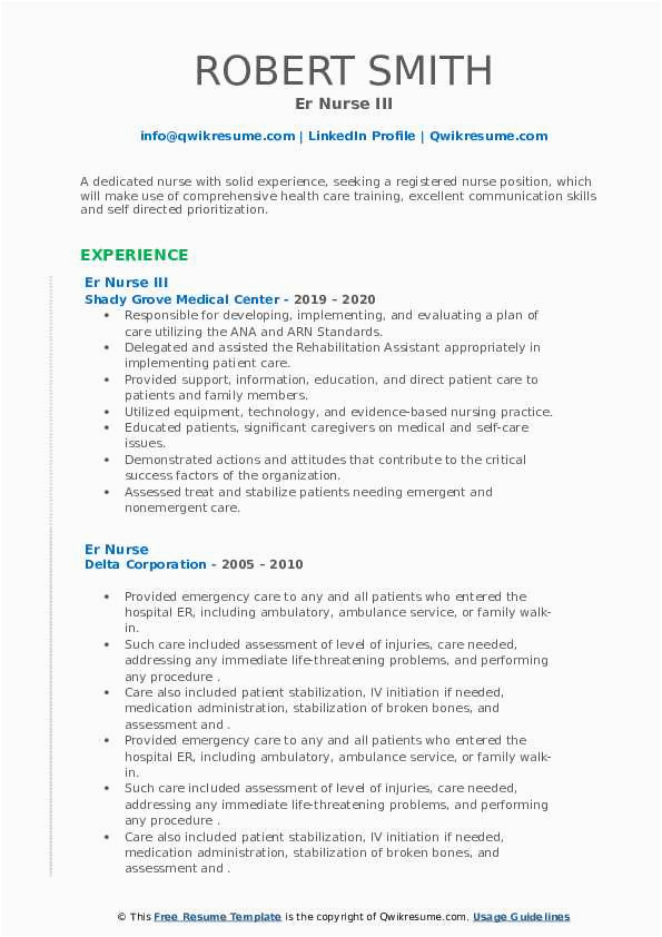 There are correspondingly many options for you as you search for the perfect er nurse job description resume sample, and behind some difficult act out and perseverance on your part, you will find yourself similar to a first-class resume in no time, and hopefully, a first-class employer, as well!. For more instruction on resumes or for a er nurse job description resume sample checkout this recommended websites.