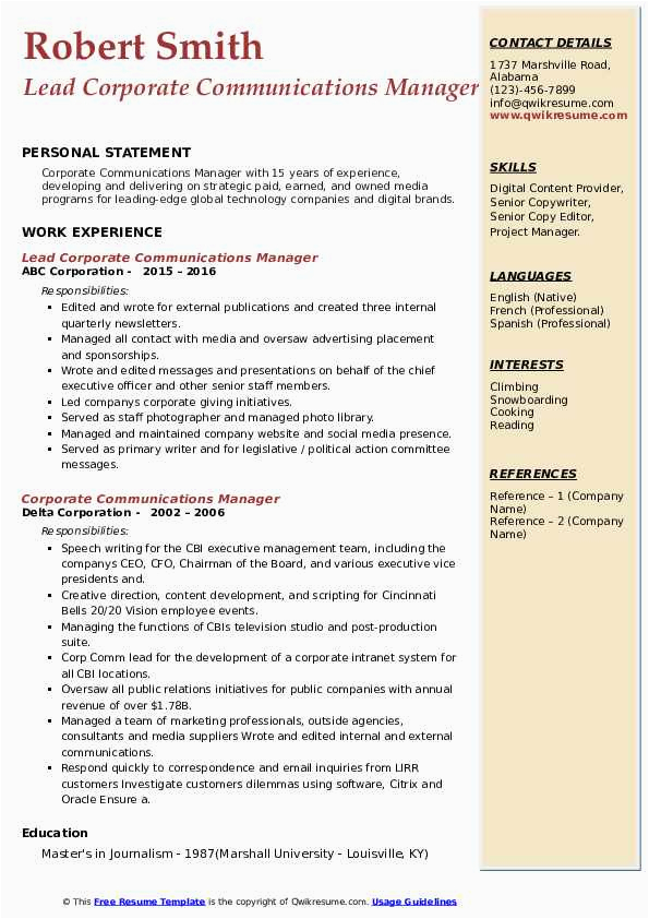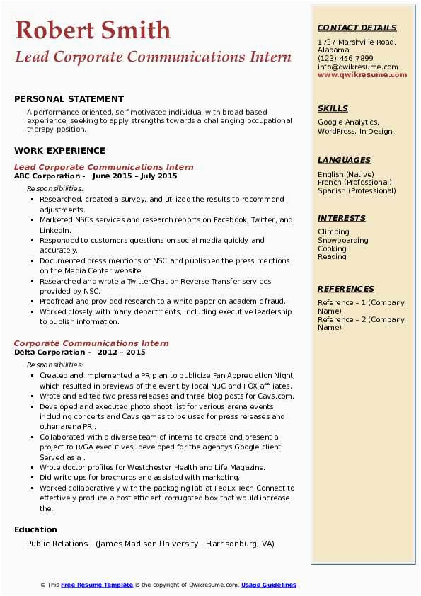 Experienced Corporate Communications Sample Resume 2023 Corporate Munications Intern Resume Samples and all other pictures, designs or photos on our website are copyright of their respective owners. we get our pictures from another websites, search engines and other sources to use as an inspiration for you. please contact us if you think we are infringing copyright of your pictures using contact page. we will be very happy to help you.