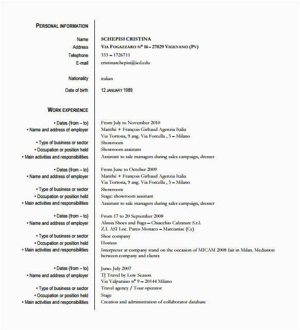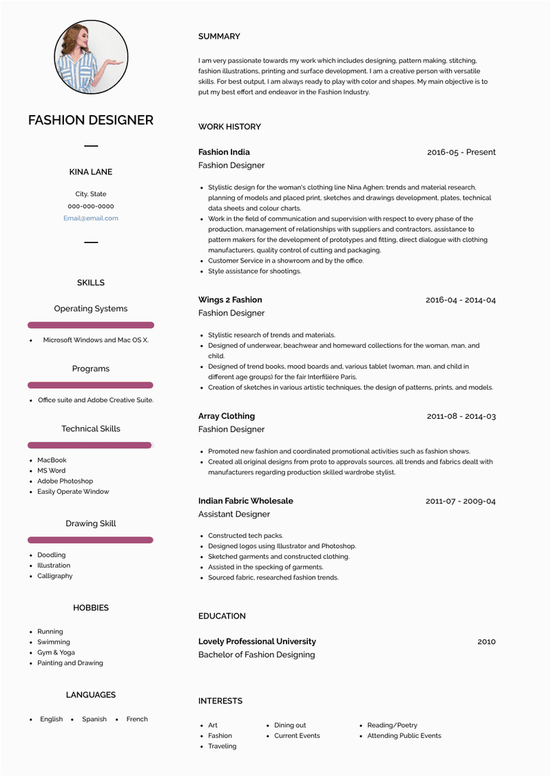 fashion Cv Format For Fresher Fashion Designer