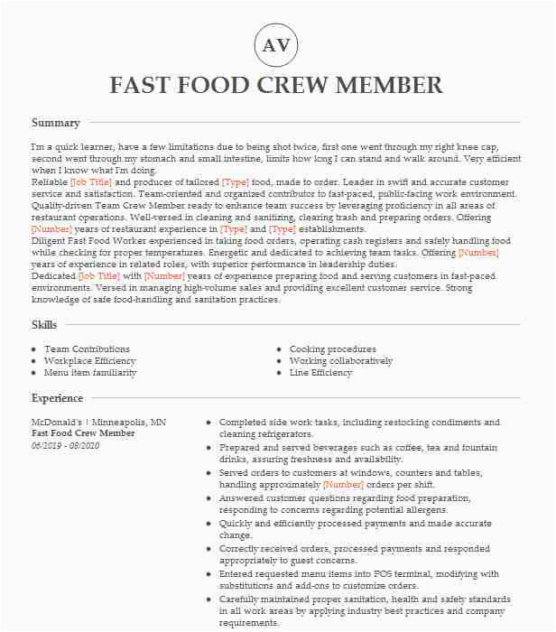 as soon as you are searching for the perfect job, you will of course desire to put your best foot forward similar to an impressive and well-formatted resume. One pretension of assuring that you have such a resume is to download a Fast Food Crew Member Resume Sample. These templates can have the funds for you later than the true resume you are looking for or handily use them as a guide to create your own.