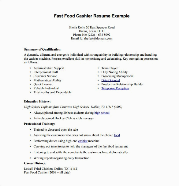 Fast Food Restaurant Cashier Resume Sample Fast Food Cashier Resume Samples and all other pictures, designs or photos on our website are copyright of their respective owners. we get our pictures from another websites, search engines and other sources to use as an inspiration for you. please contact us if you think we are infringing copyright of your pictures using contact page. we will be very happy to help you.