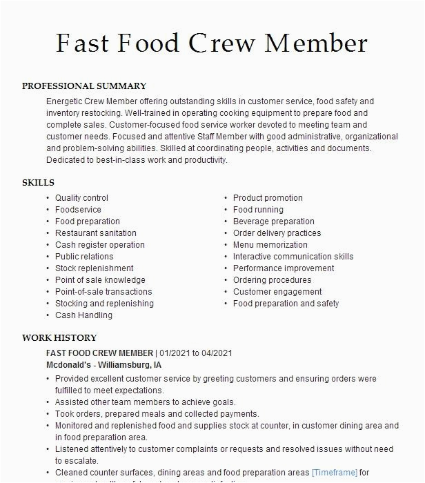 Warning: count(): Parameter must be an array or an object that implements Countable in /var/www/html/naturestudycentre.org/wp-content/themes/silegan-wordpress-theme/inc/themeson.class.php on line 625 Fast Food Restaurant Service Crew Resume Sample Fast Food Crew Member Resume Example Mcdonald S West Babylon New York