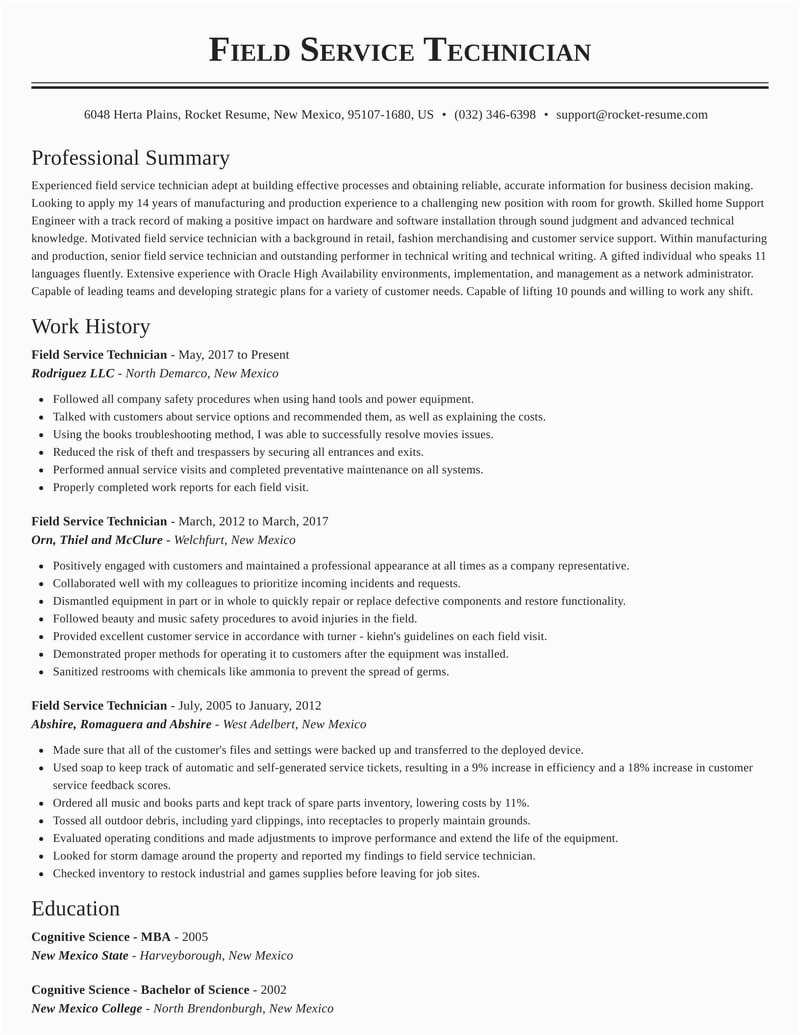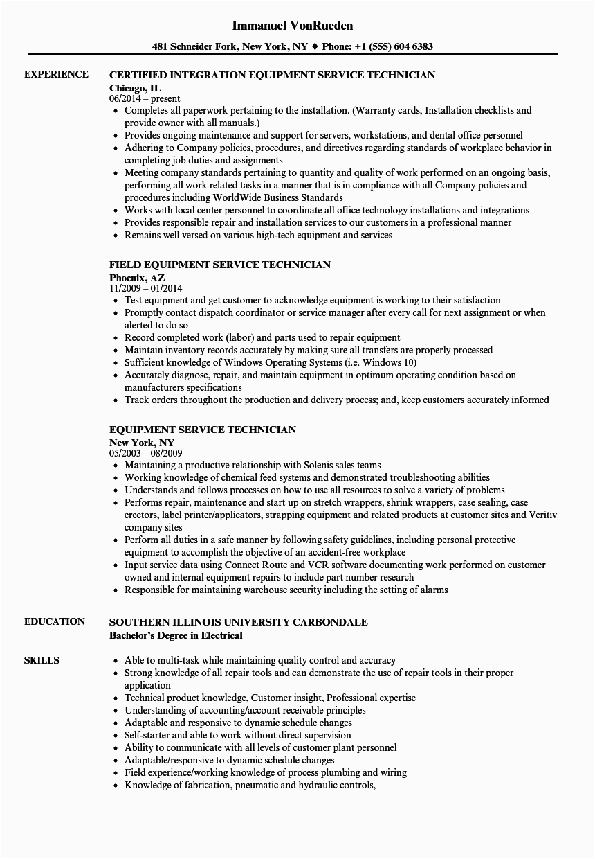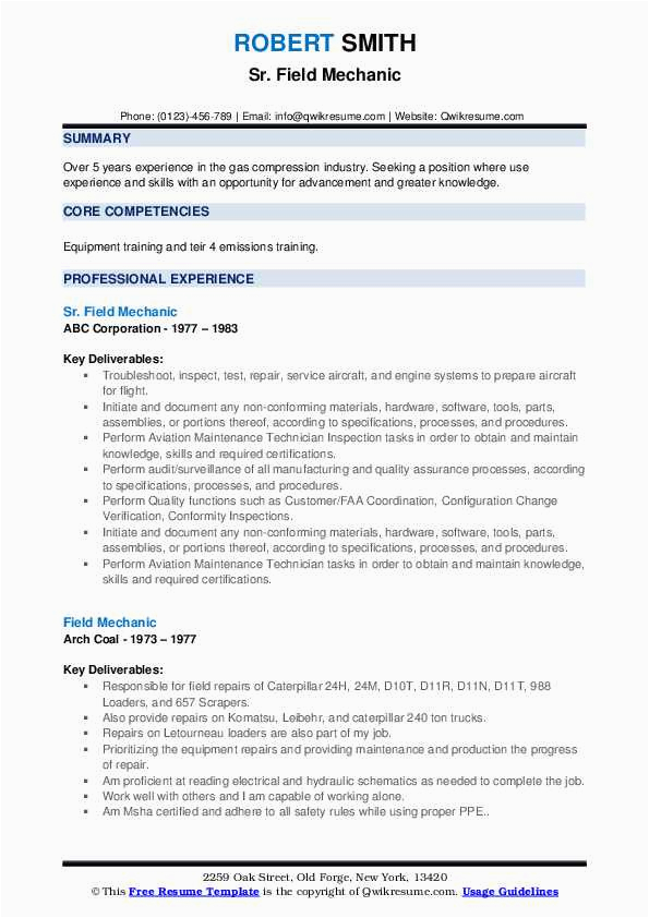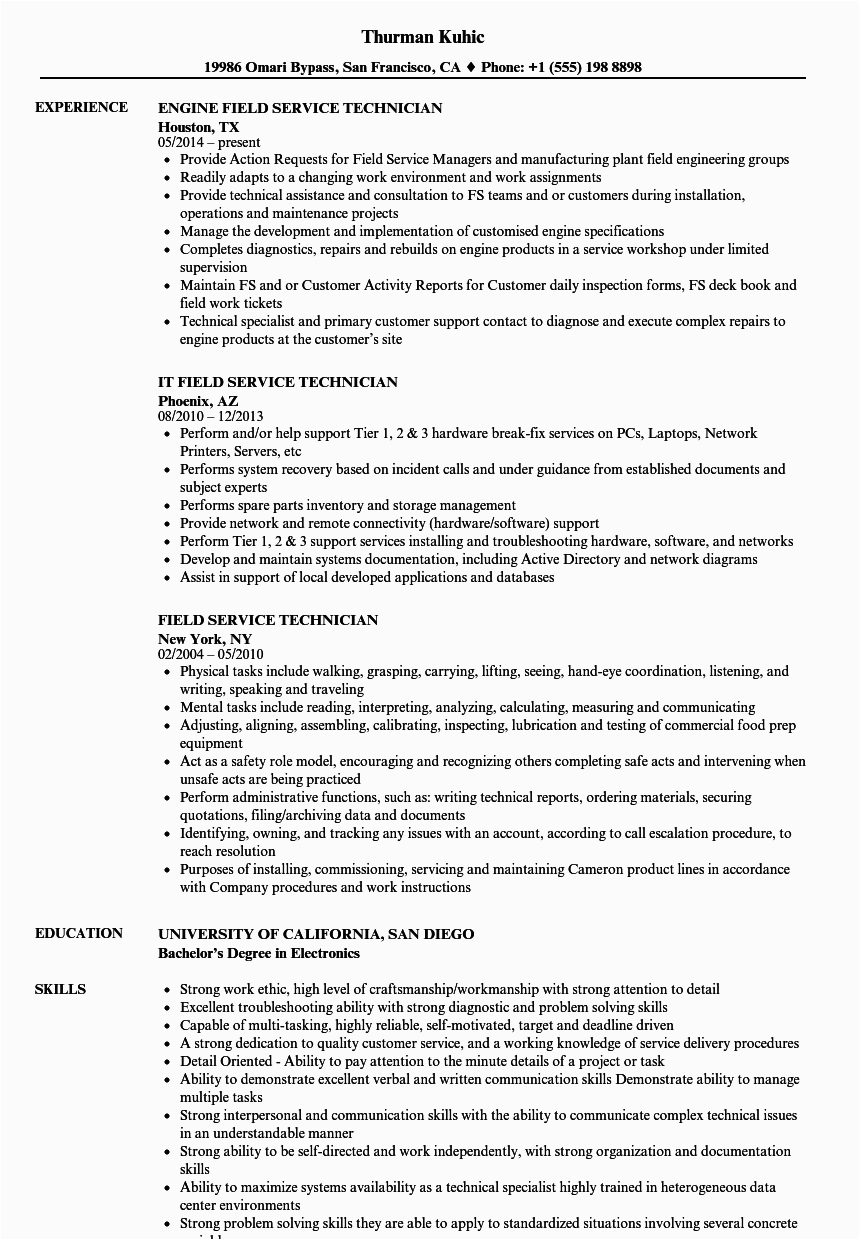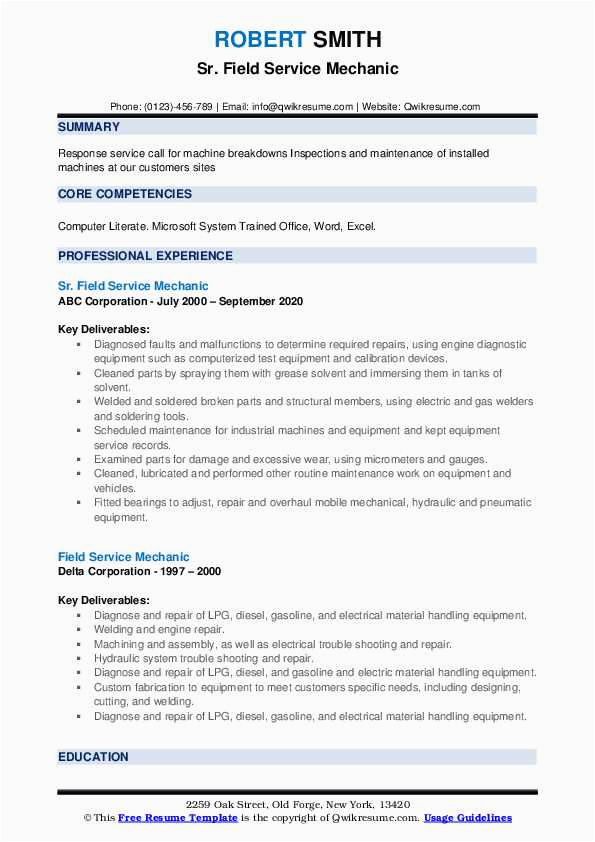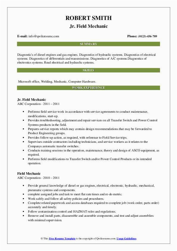 9 photos of the Field Service Technician Mechanic Sample Resume