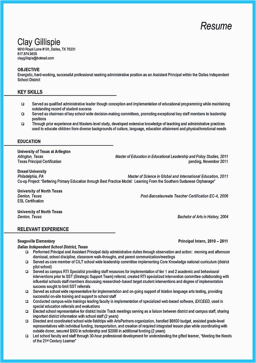 First Time assistant Principal Resume Inspirational Sample