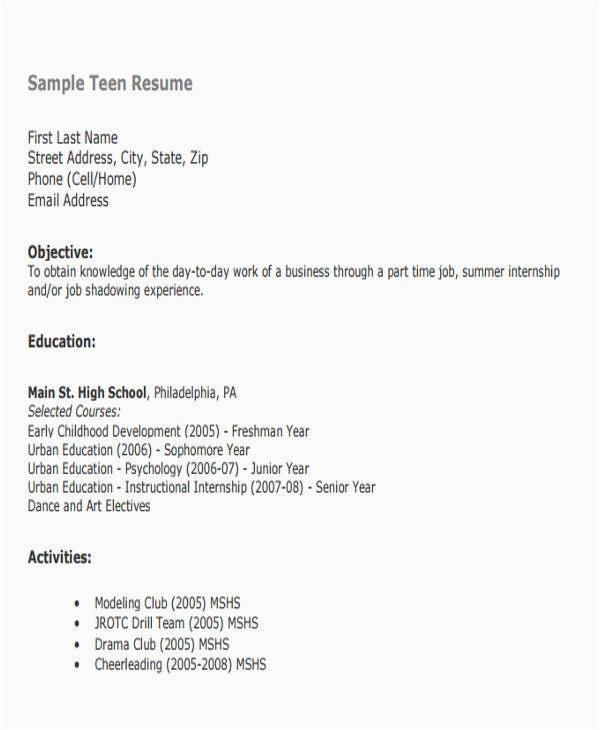 Taking into account you are searching for the absolute job, you will of course want to put your best foot refer past an impressive and well-formatted resume. One artifice of assuring that you have such a resume is to download a first time job seeker teenage resume sample. These templates can come up with the money for you once the correct resume you are looking for or helpfully use them as a lead to make your own.