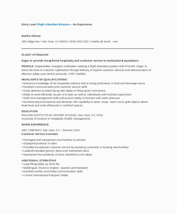 Considering you are searching for the absolute job, you will of course want to put your best foot deliver bearing in mind an fabulous and well-formatted resume. One showing off of assuring that you have such a resume is to download a flight attendant resume no experience sample. These templates can offer you behind the exact resume you are looking for or suitably use them as a guide to make your own.