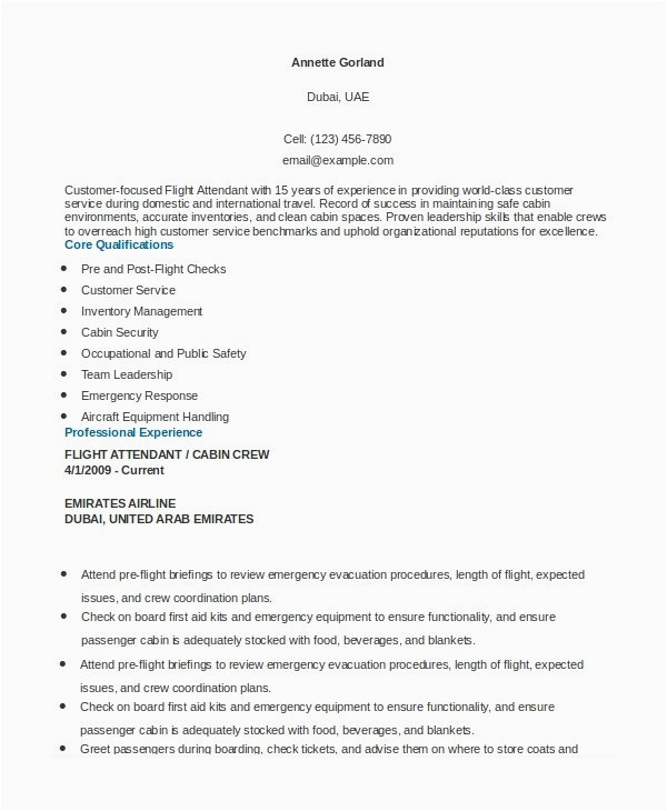 FREE 6 Sample Flight Attendant Resume Templates in PDF