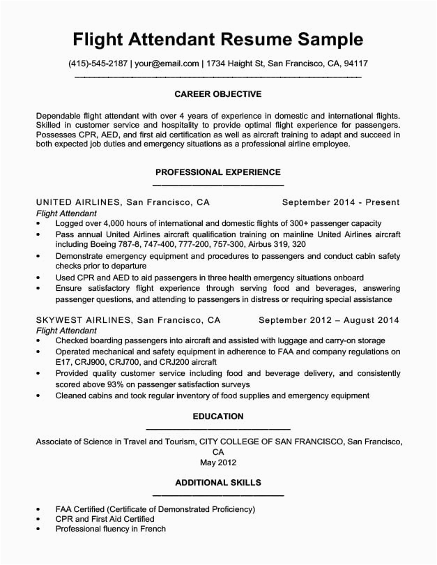 Flight attendant Resume Template No Experience downloads can be a lifesaver once you see how compliant they can be. The further of using them are numerous. They save time, provide good formatting, presentation, and can encourage you spread around yourself professionally. The idea of promotion is creating a lasting impression. Your resume markets you!