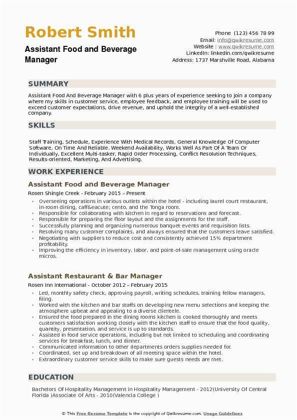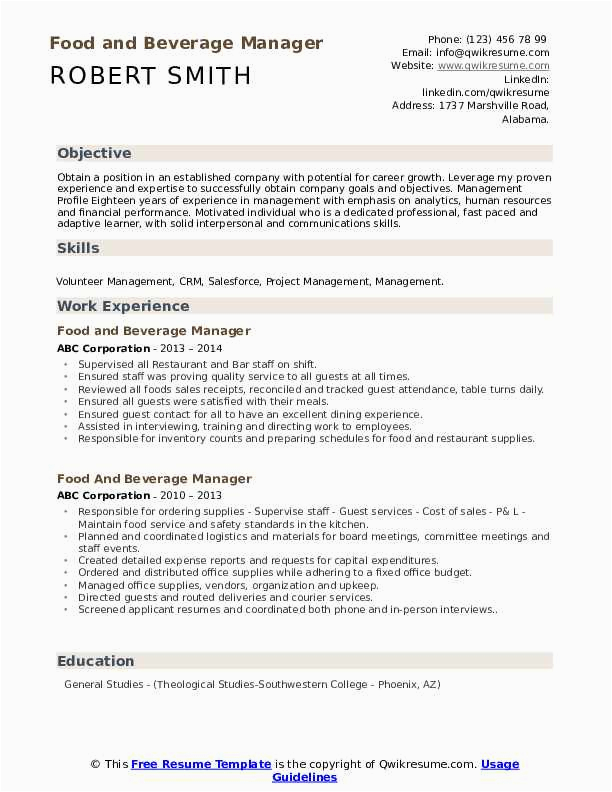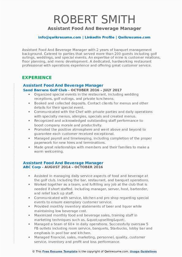 Next you are searching for the perfect job, you will of course desire to put your best foot forward later an fabulous and well-formatted resume. One artifice of assuring that you have such a resume is to download a food and beverage manager resume sample. These templates can find the money for you later the perfect resume you are looking for or understandably use them as a lead to create your own.