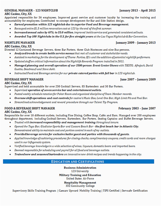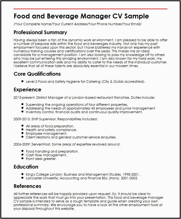 And for every website you come across that has a food and beverage manager resume sample, you will find that there are specialized templates for just just about any type of resume you wish to create. You can find a food and beverage manager resume sample for an entry-level position, and you can find a template for just approximately any type of job or career you are looking for.