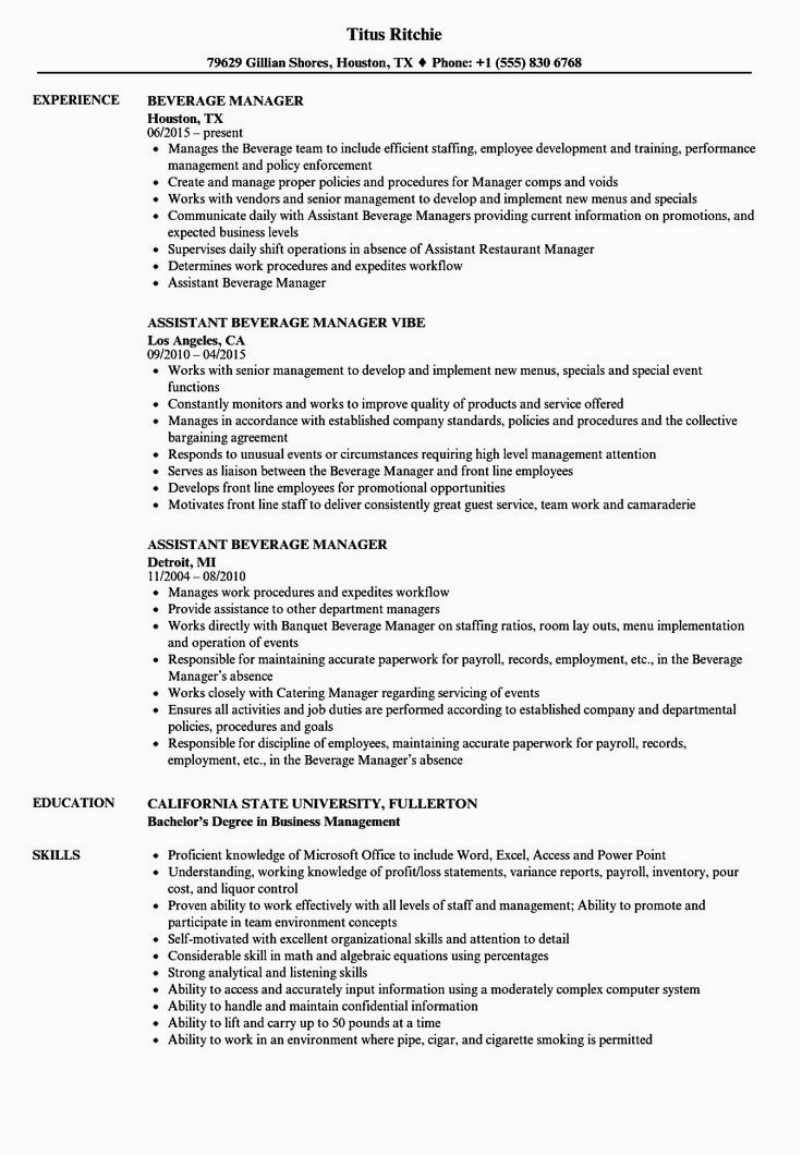 Food and Beverage Manager Resume Awesome Beverage Manager