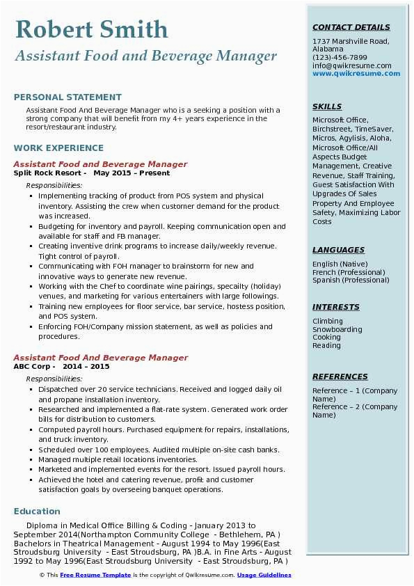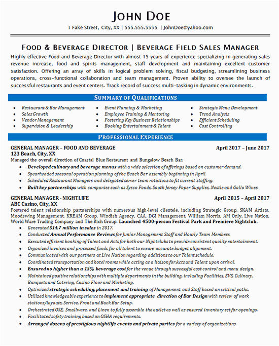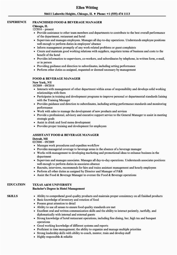 Food and Beverage Manager Resume Awesome Beverage Manager