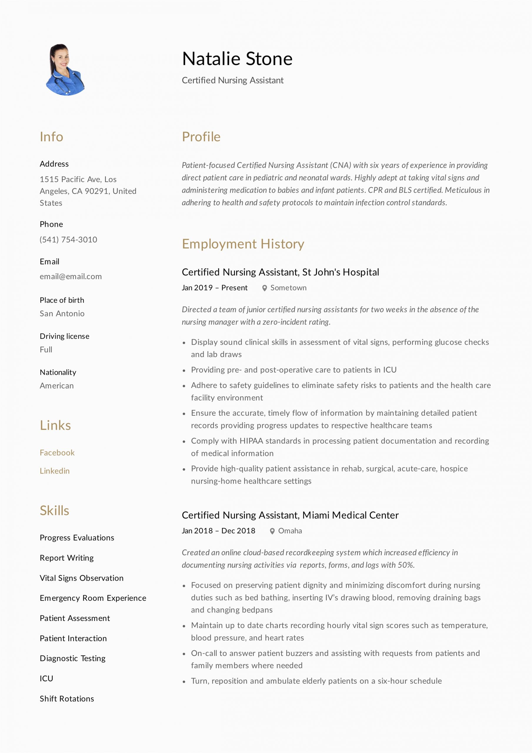 Free Certified Nursing assistant Resume Template downloads can be a lifesaver when you look how helpful they can be. The facilitate of using them are numerous. They save time, come up with the money for good formatting, presentation, and can back you broadcast yourself professionally. The idea of publicity is creating a lasting impression. Your resume markets you!