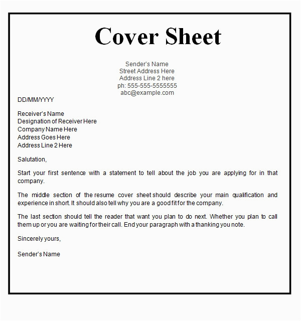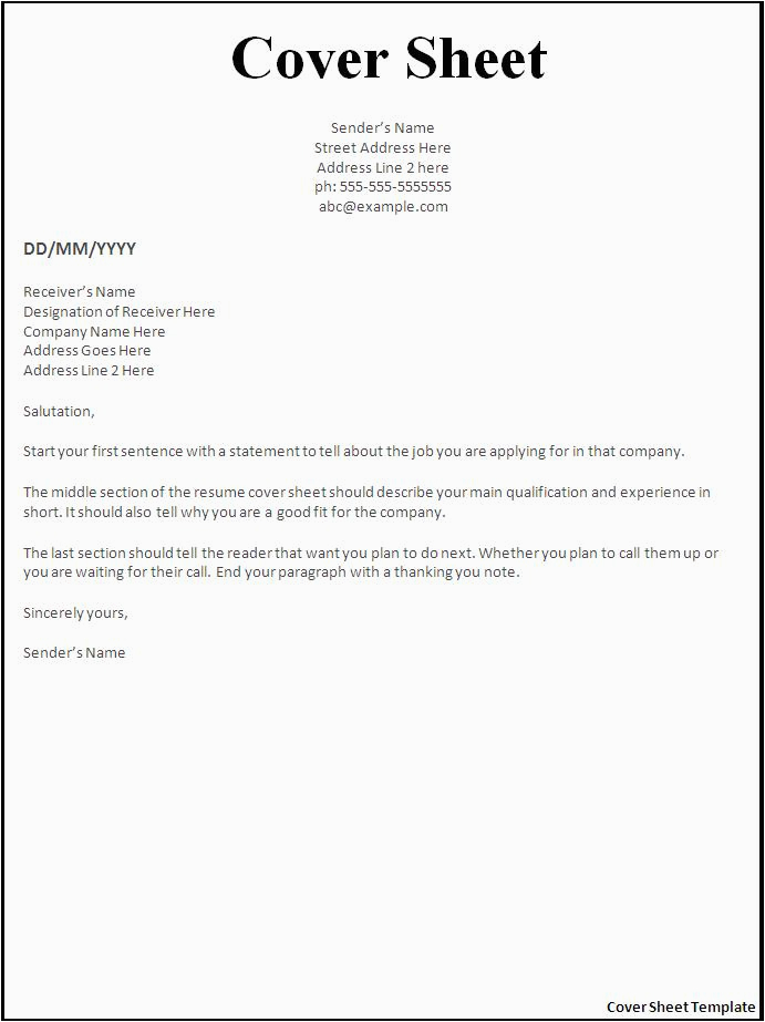 12 Resume Cover Sheet Templates – Free Sample Example