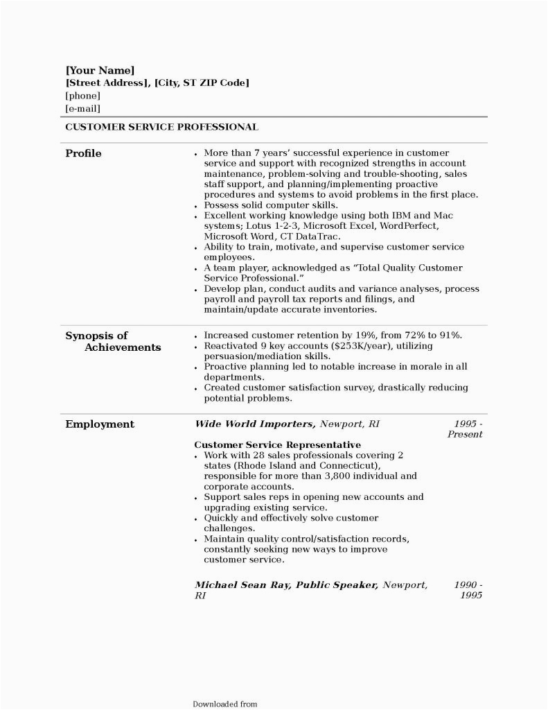 Free Customer Service Representative Resume Template downloads can be a lifesaver behind you look how willing to help they can be. The benefits of using them are numerous. They keep time, have the funds for good formatting, presentation, and can incite you push yourself professionally. The idea of marketing is creating a lasting impression. Your resume markets you!