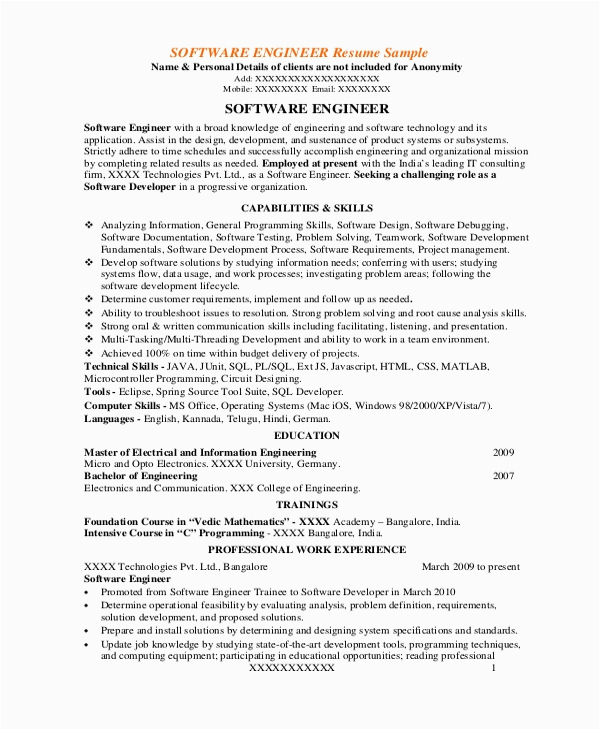 However, these are not your abandoned options for locating free download sample resume for software engineer. Your intellectual or college circles will most assuredly have more than one resume template that you can use, and will be happy to put up to you. conveniently head higher than to their Placement Office and you will have a template in no time. After all, it is their job to encourage you locate employment, and considering you are well-off and a satisfied and gainfully employed former student, it is then a feather in their cap.