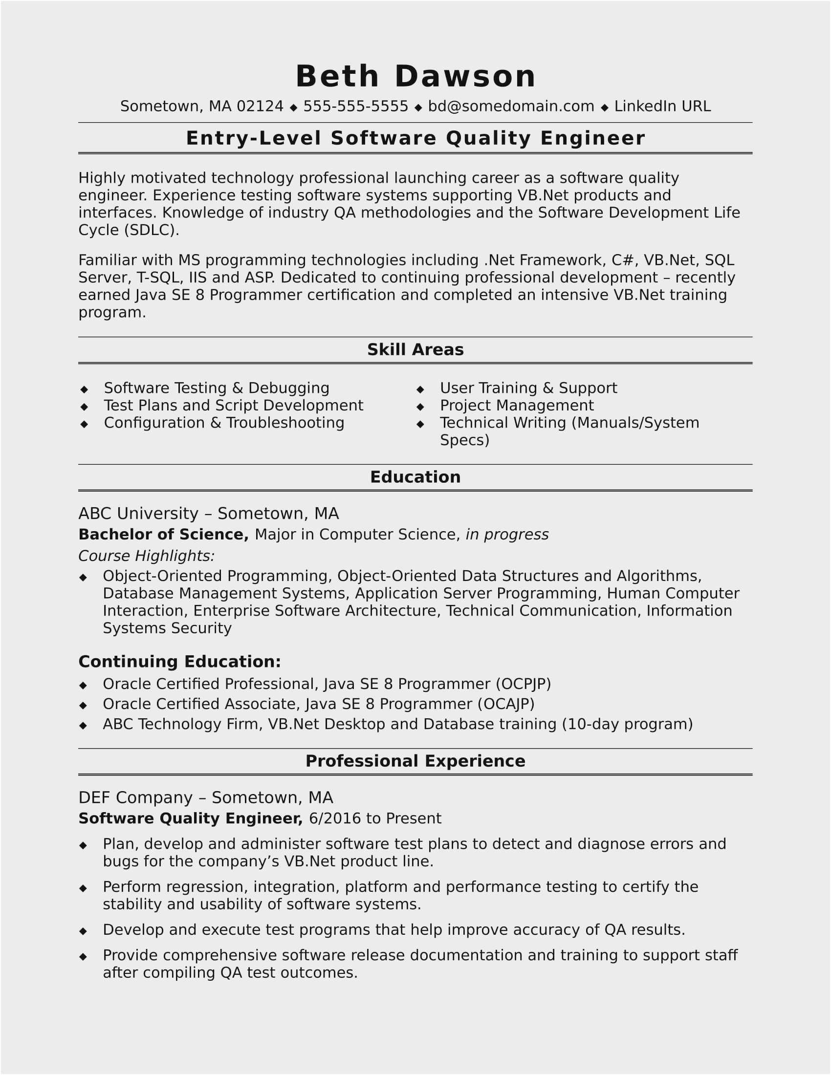 Free Collection Qa Entry Level Resumes Teke Wpart
