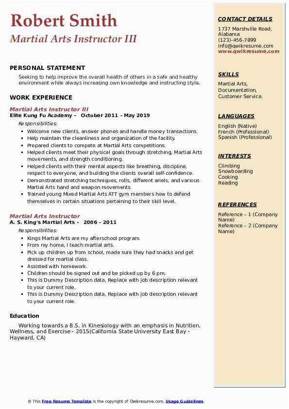 Warning: count(): Parameter must be an array or an object that implements Countable in /var/www/html/naturestudycentre.org/wp-content/themes/silegan-wordpress-theme/inc/themeson.class.php on line 625 Free Resume Samples for Martial Arts Martial Arts Instructor Resume Template and Job Description