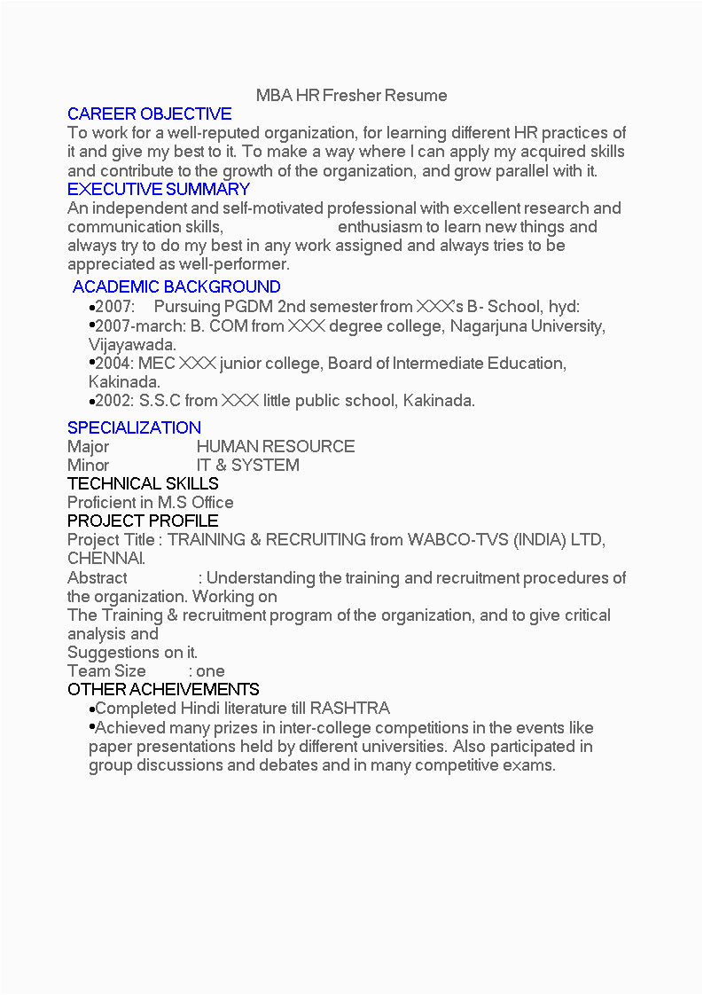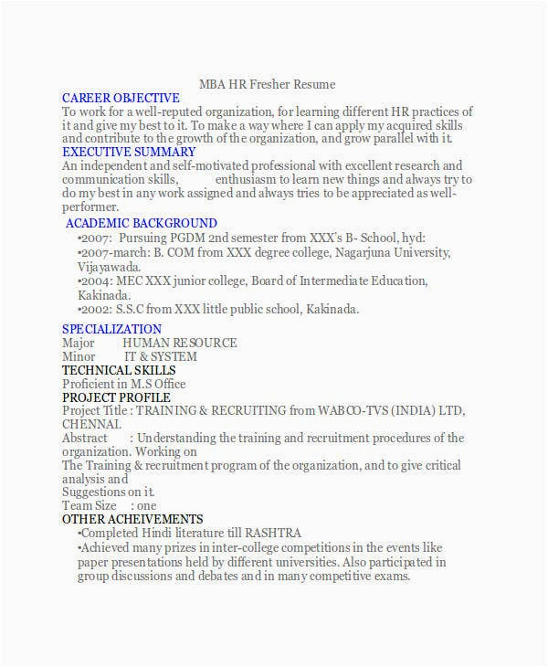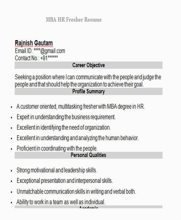 9 photos of the Free Resume Samples for Mba Hr Freshers