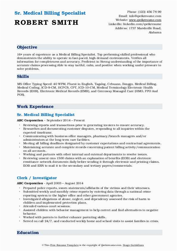 Warning: count(): Parameter must be an array or an object that implements Countable in /var/www/html/naturestudycentre.org/wp-content/themes/silegan-wordpress-theme/inc/themeson.class.php on line 625 Free Resume Samples for Medical Billing Medical Billing Specialist Resume Example & Guide