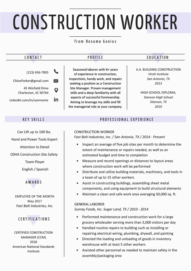 Construction Worker Resume Example & Writing Guide