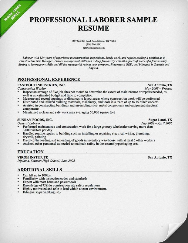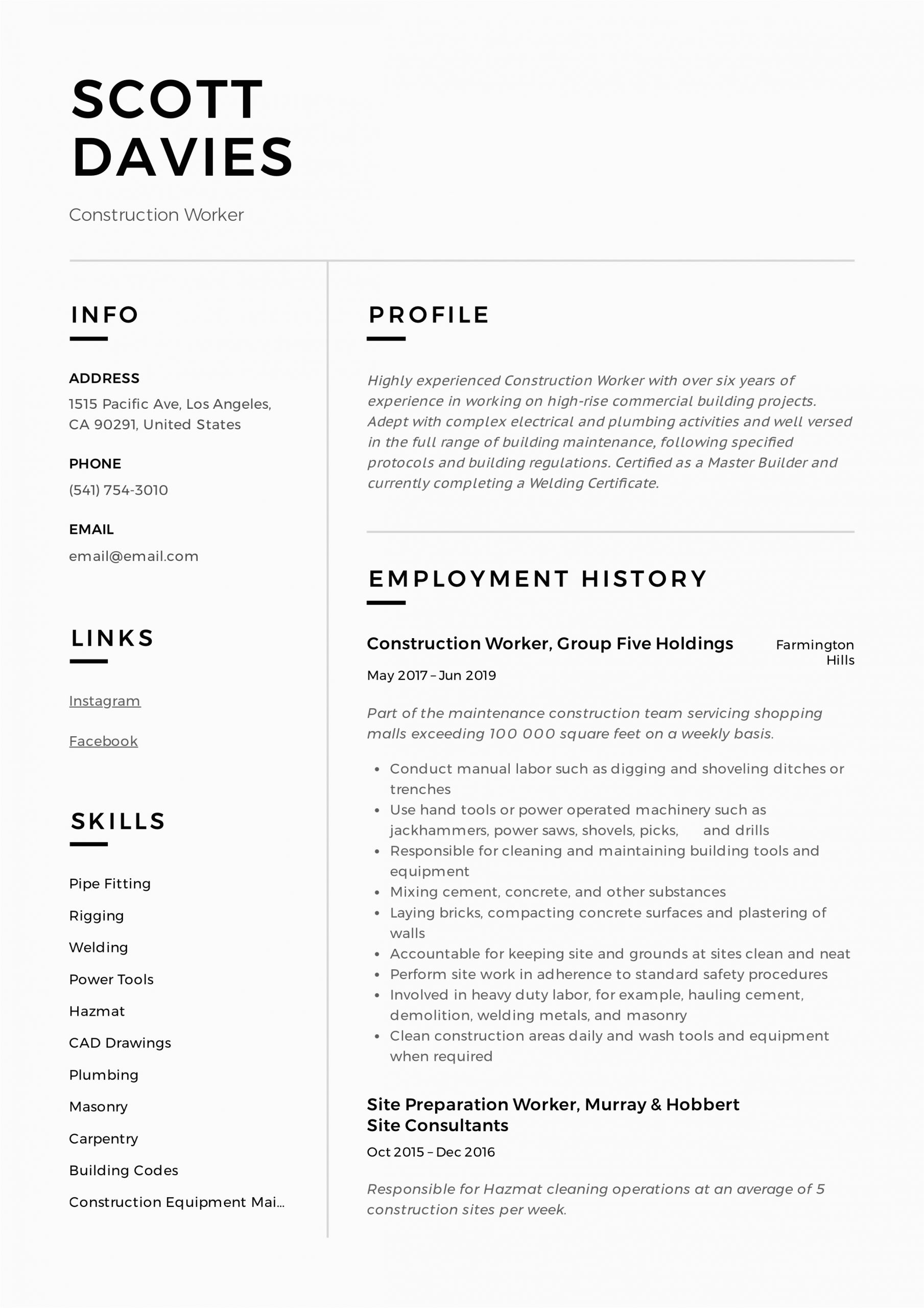 20 Construction Worker Resume Sample Free Resume