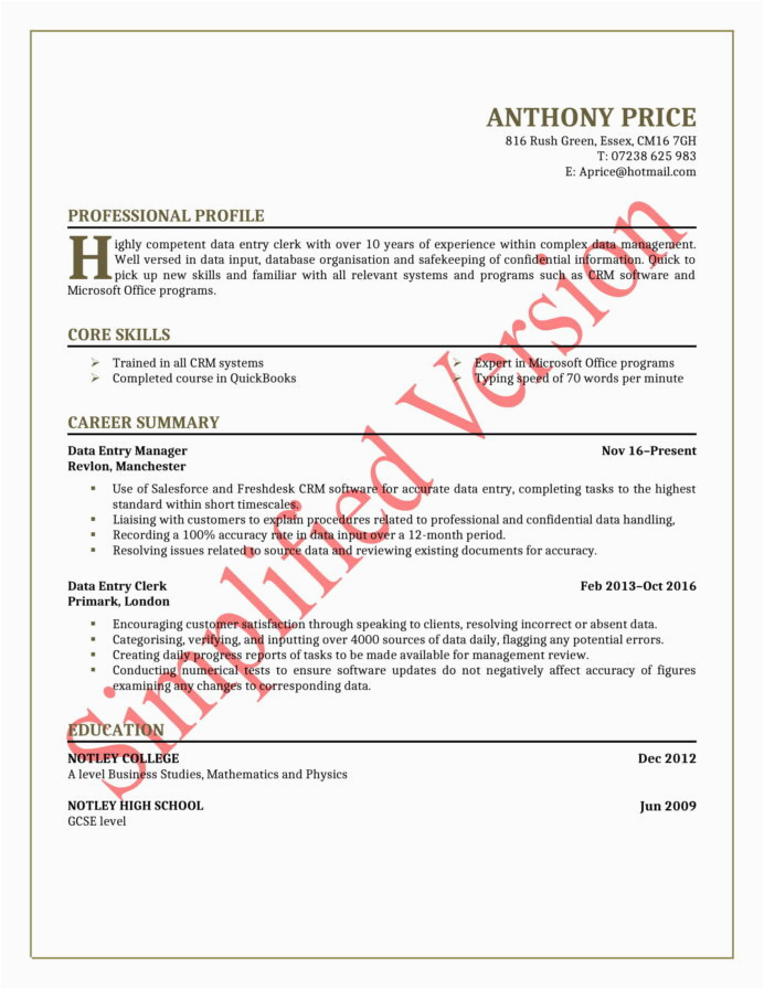 Data Entry Resume Sample Classic Clerk Sv Uwaterloo