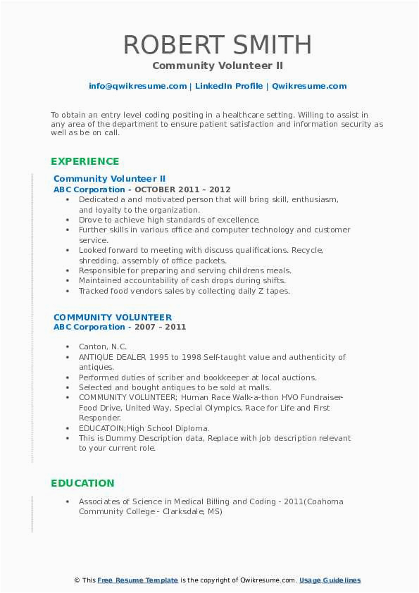 munity Volunteer Resume Samples