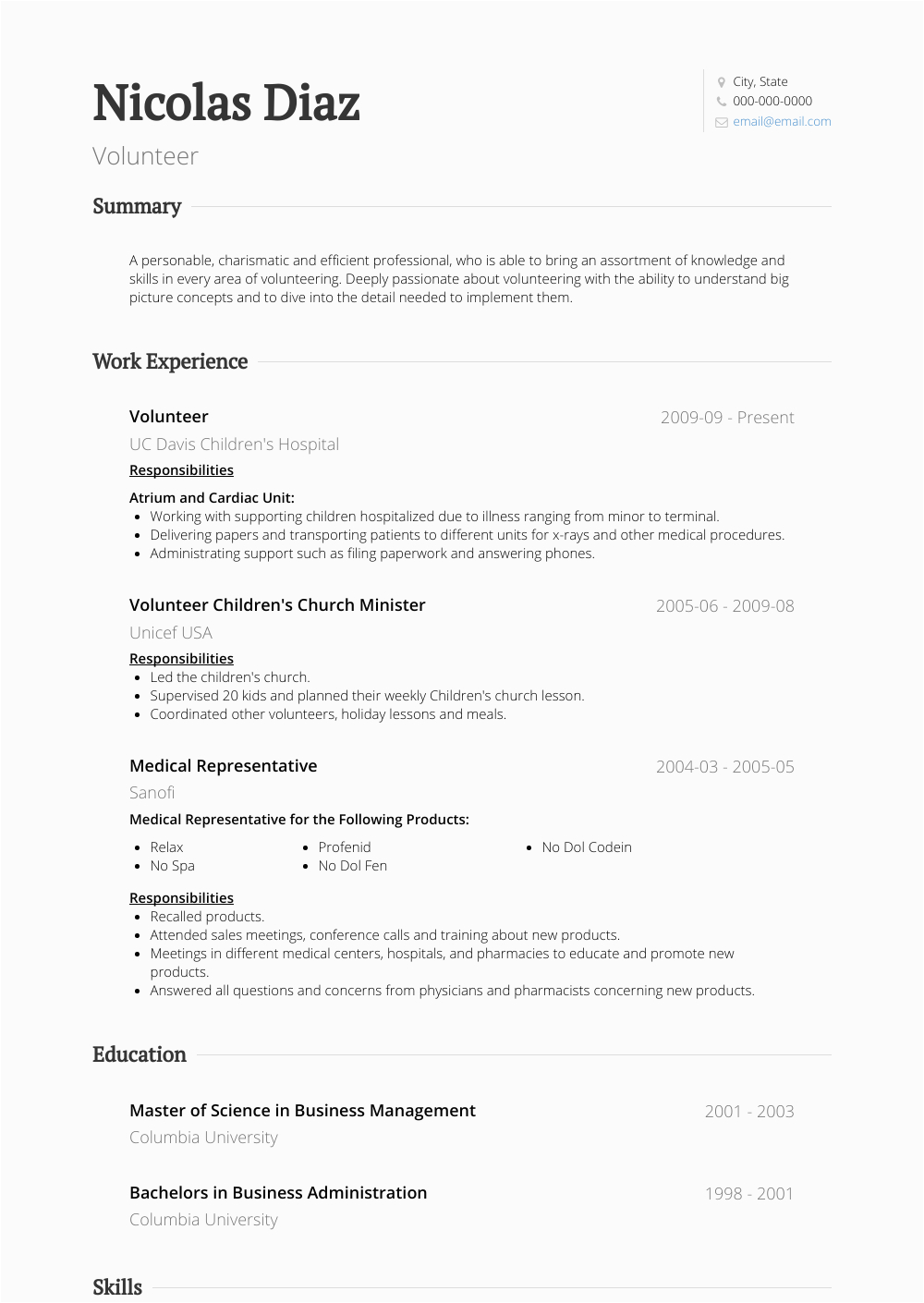 Free Resume Templates with Volunteer Experience downloads can be a lifesaver gone you look how cooperative they can be. The assist of using them are numerous. They keep time, offer fine formatting, presentation, and can back up you present yourself professionally. The idea of promotion is creating a lasting impression. Your resume markets you!