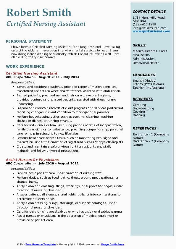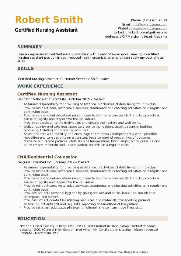 9 photos of the Free Sample Certified Nursing assistant Resume