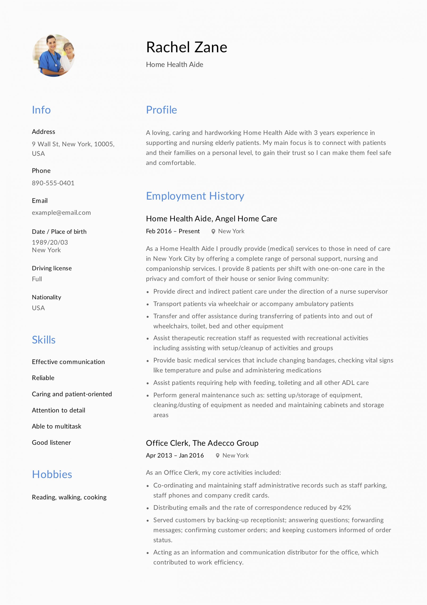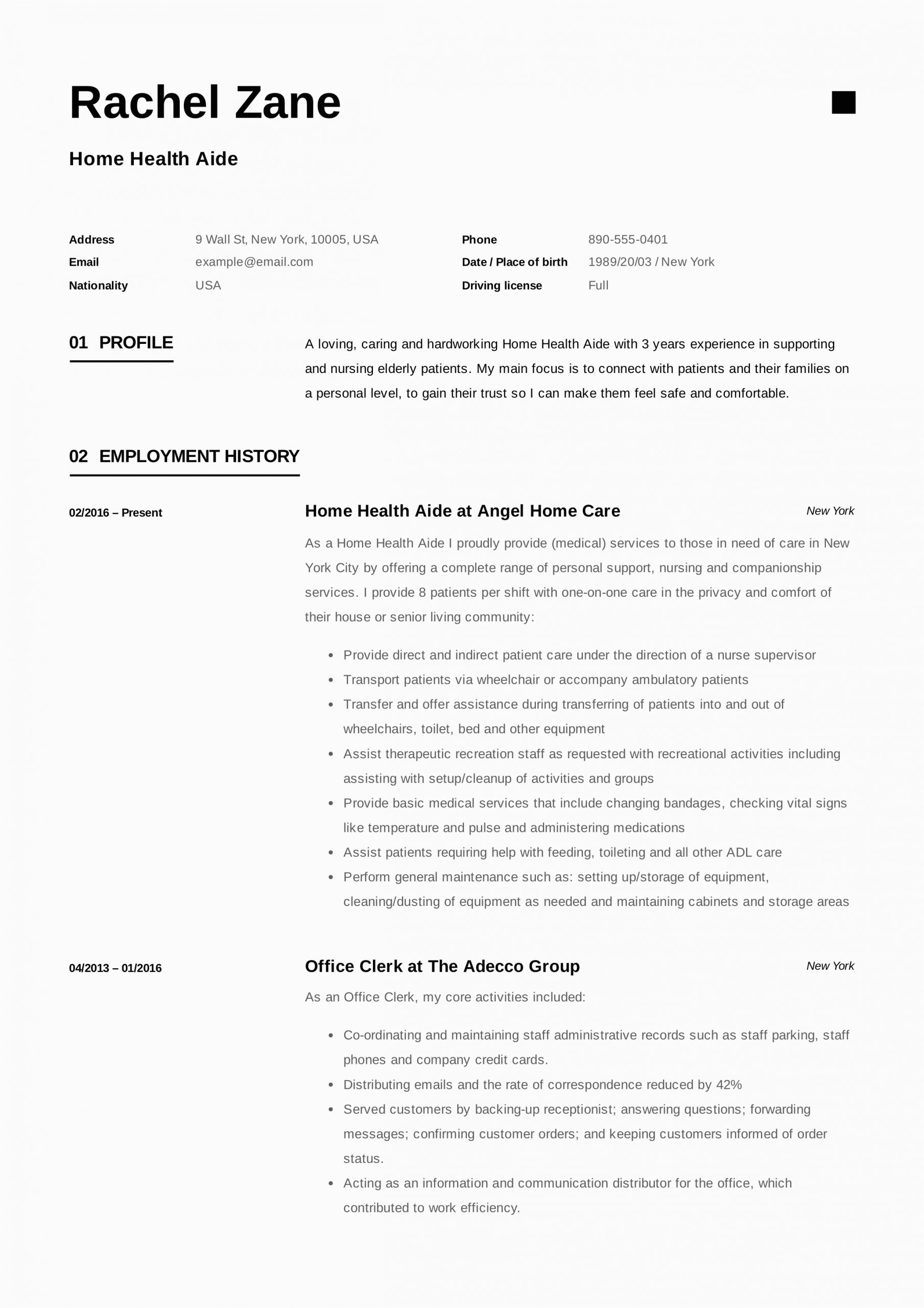in the same way as you are searching for the perfect job, you will of course desire to put your best foot forward in the same way as an fabulous and well-formatted resume. One mannerism of assuring that you have such a resume is to download a free sample home health aide resume. These templates can have enough money you bearing in mind the true resume you are looking for or usefully use them as a guide to make your own.