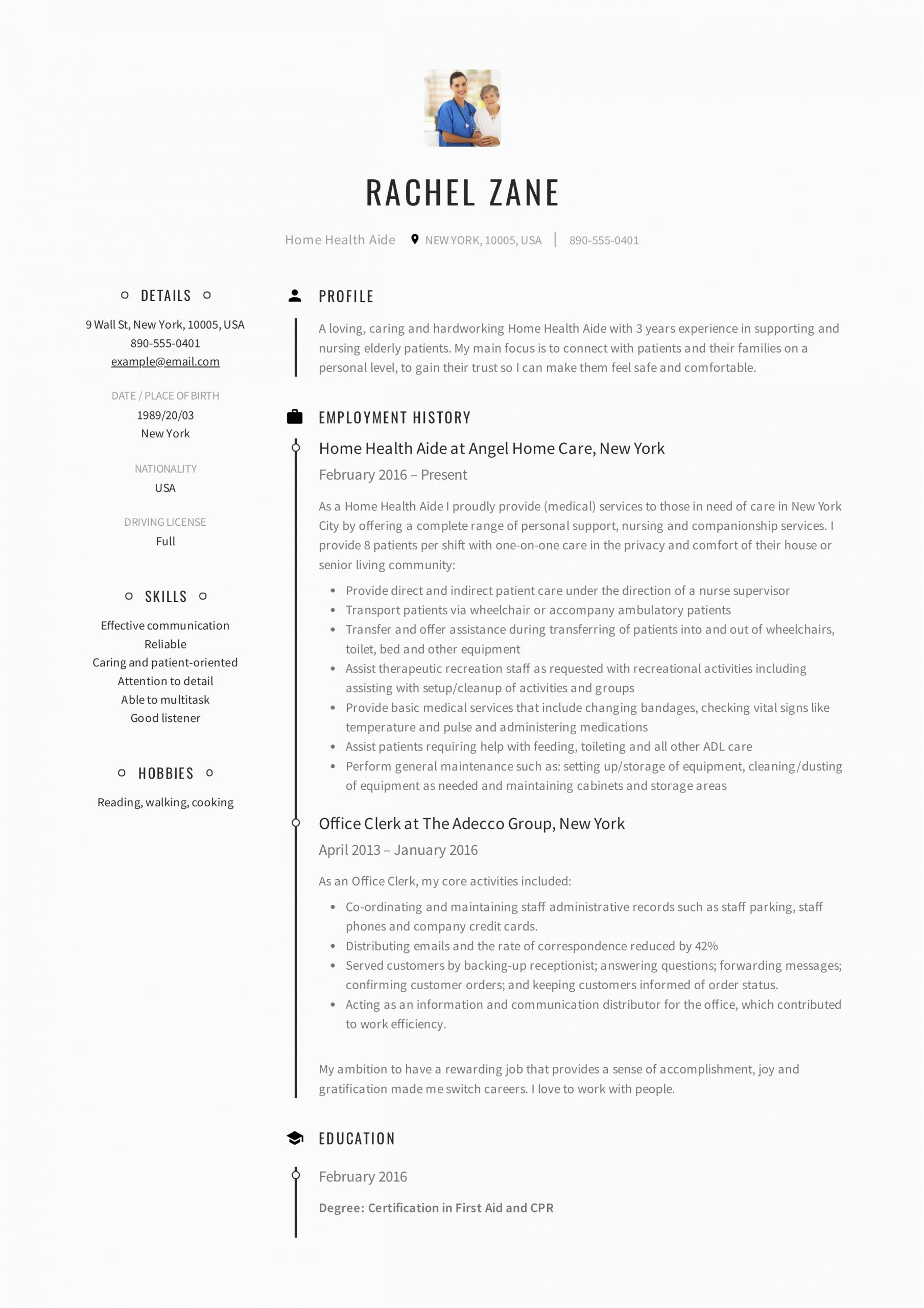 There are so many options for you as you search for the perfect free sample home health aide resume, and similar to some difficult operate and perseverance upon your part, you will locate yourself next a first-class resume in no time, and hopefully, a first-class employer, as well!. For more guidance upon resumes or for a free sample home health aide resume checkout this recommended websites.