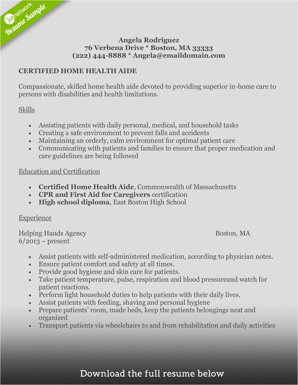 Do you have a pal or relative who has a job you love and a fine grasp of how to format and make a resume? Why not question them to look the resume that they used, and use that for your free sample home health aide resume?