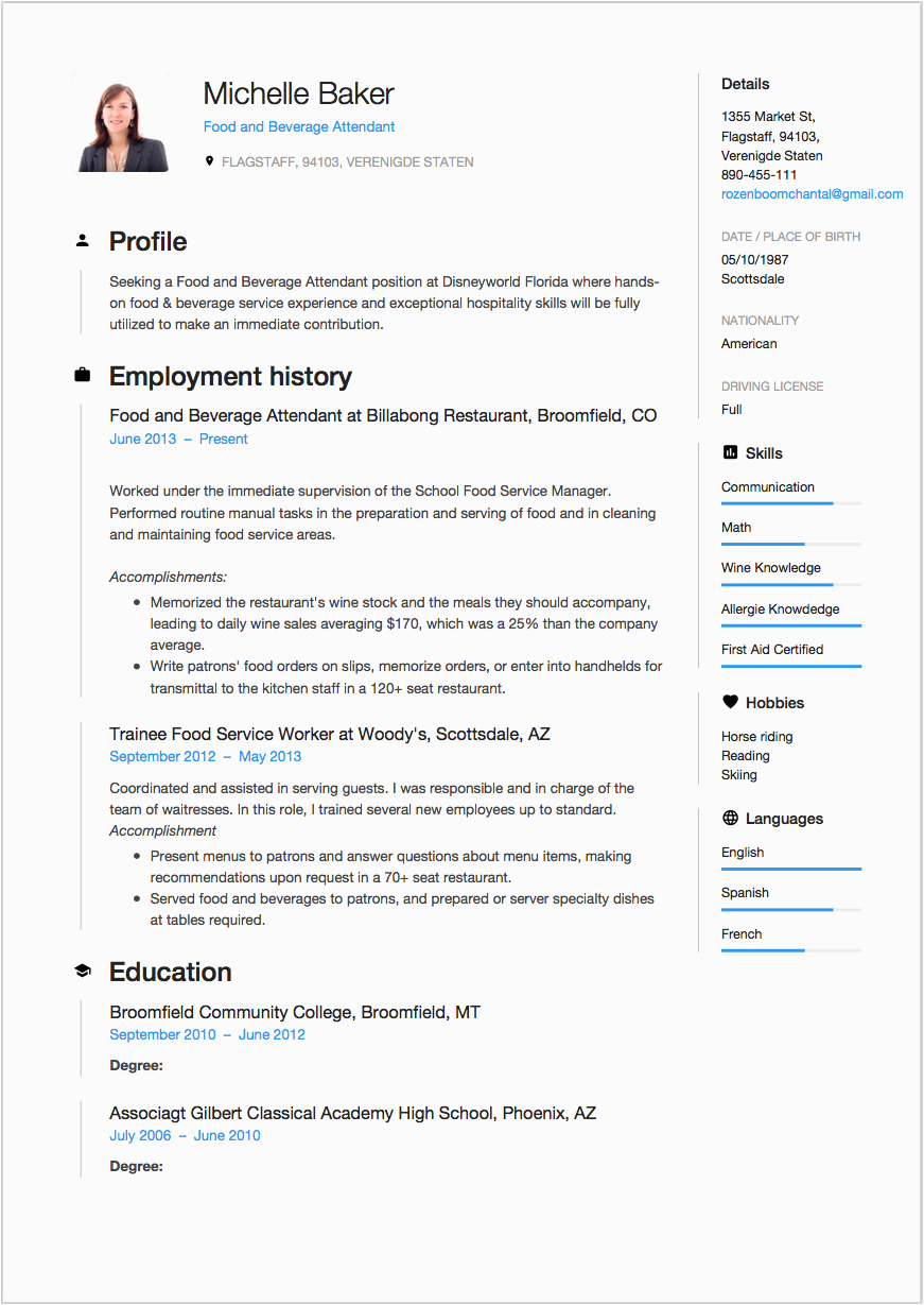 9 photos of the Free Sample Of A Resume Food and Beveage