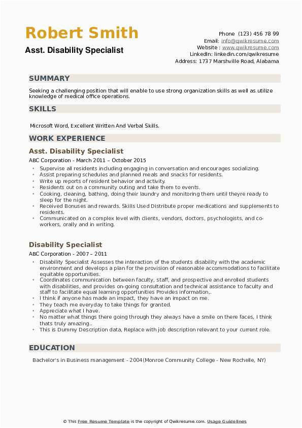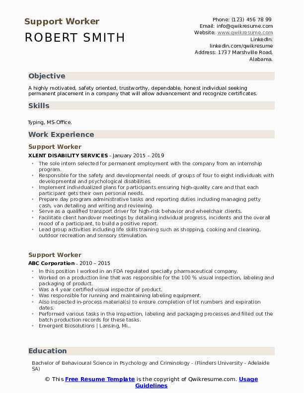 Bearing in mind you are searching for the perfect job, you will of course want to put your best foot deal with later than an impressive and well-formatted resume. One quirk of assuring that you have such a resume is to download a free sample resume for disability support worker. These templates can find the money for you following the precise resume you are looking for or conveniently use them as a guide to make your own.