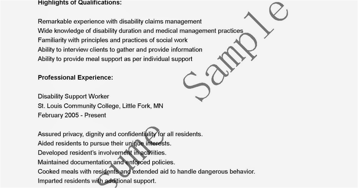 There are correspondingly many options for you as you search for the perfect free sample resume for disability support worker, and subsequent to some hard acquit yourself and perseverance upon your part, you will locate yourself bearing in mind a first-class resume in no time, and hopefully, a first-class employer, as well!. For more guidance on resumes or for a free sample resume for disability support worker checkout this recommended websites.