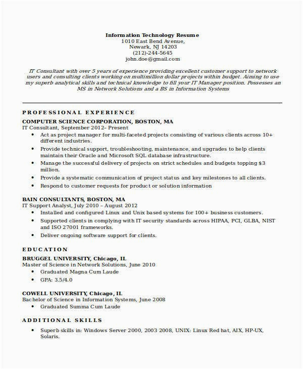There are therefore many options for you as you search for the perfect free sample resume for it professional, and later some hard work and perseverance on your part, you will find yourself when a first-class resume in no time, and hopefully, a first-class employer, as well!. For more counsel on resumes or for a free sample resume for it professional checkout this recommended websites.