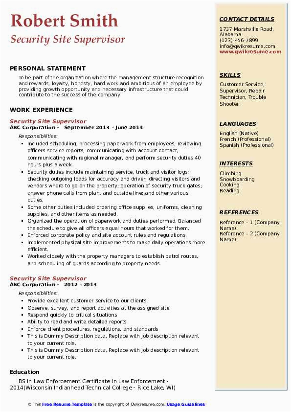 Free Sample Resume for Security Supervisor Security Supervisor Resume Samples and all other pictures, designs or photos on our website are copyright of their respective owners. we get our pictures from another websites, search engines and other sources to use as an inspiration for you. please contact us if you think we are infringing copyright of your pictures using contact page. we will be very happy to help you.