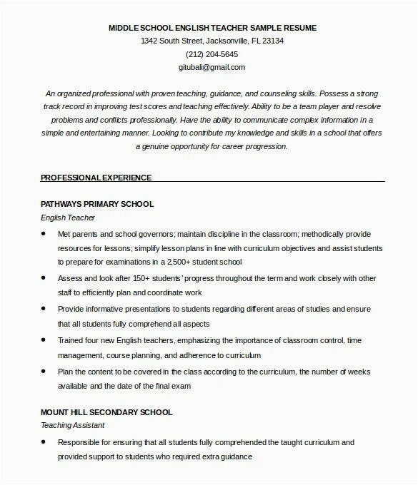 You could furthermore download a template from the Internet; there are an abundance of websites where you will be skilled to find a free sample resume for teachers doc, either to suitably peruse or to download and use.
