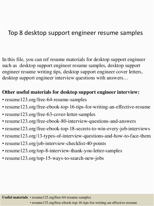 Fresher Resume Sample for Desktop Support Engineer Desktop Support Engineer Resume and all other pictures, designs or photos on our website are copyright of their respective owners. we get our pictures from another websites, search engines and other sources to use as an inspiration for you. please contact us if you think we are infringing copyright of your pictures using contact page. we will be very happy to help you.