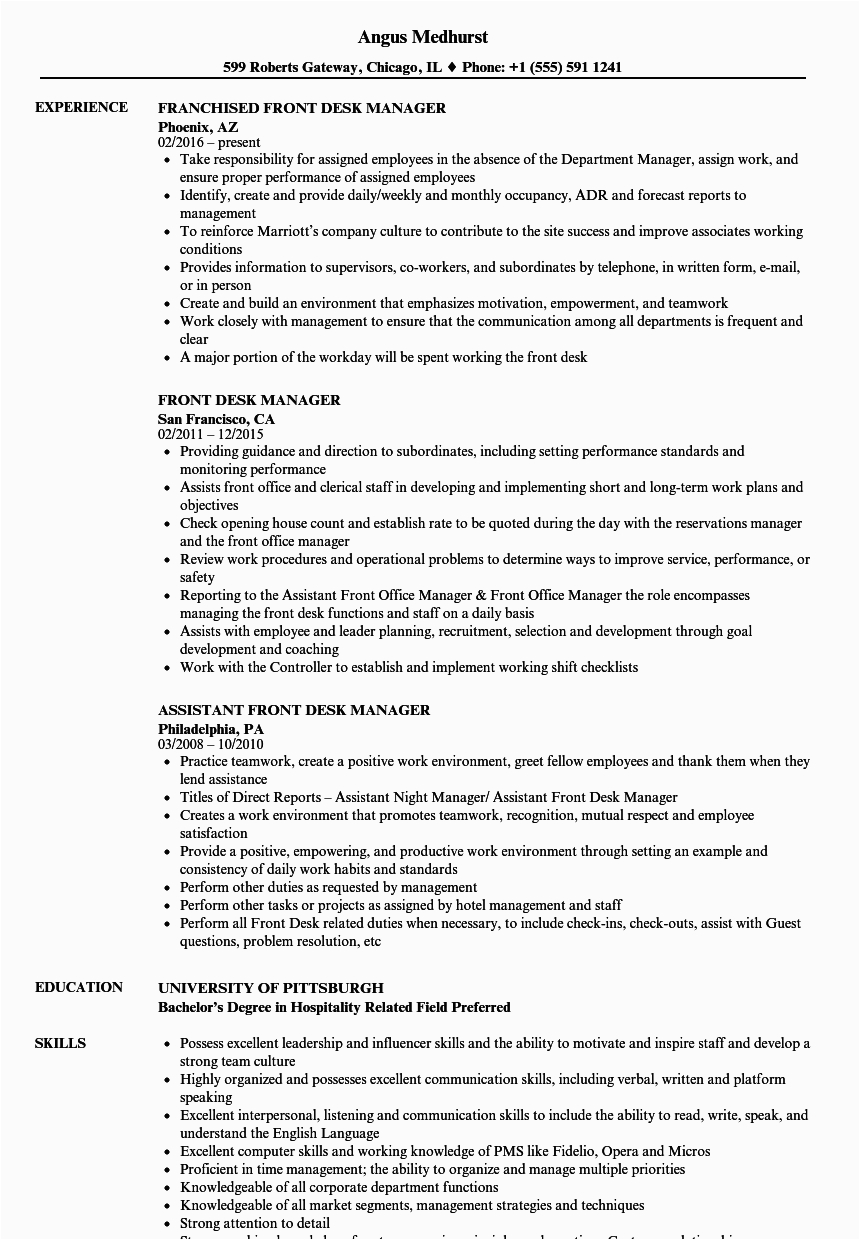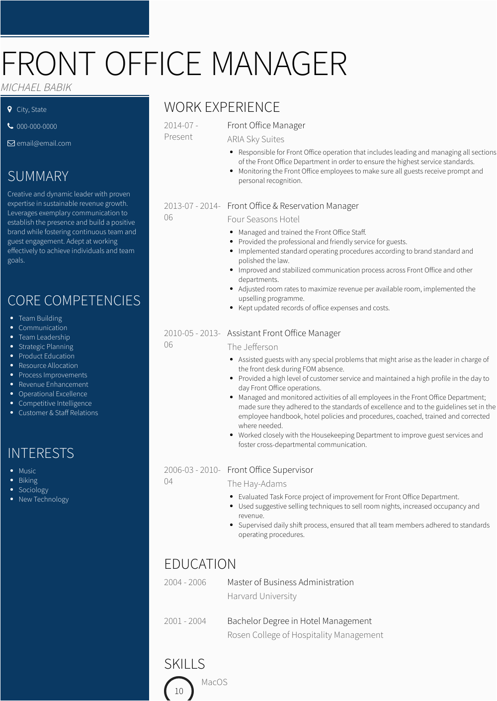 There are appropriately many options for you as you search for the perfect front office duty manager resume sample, and in imitation of some hard enactment and perseverance on your part, you will locate yourself gone a first-class resume in no time, and hopefully, a first-class employer, as well!. For more guidance upon resumes or for a front office duty manager resume sample checkout this recommended websites.