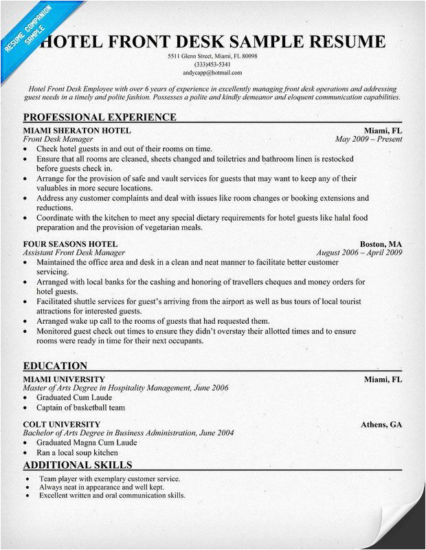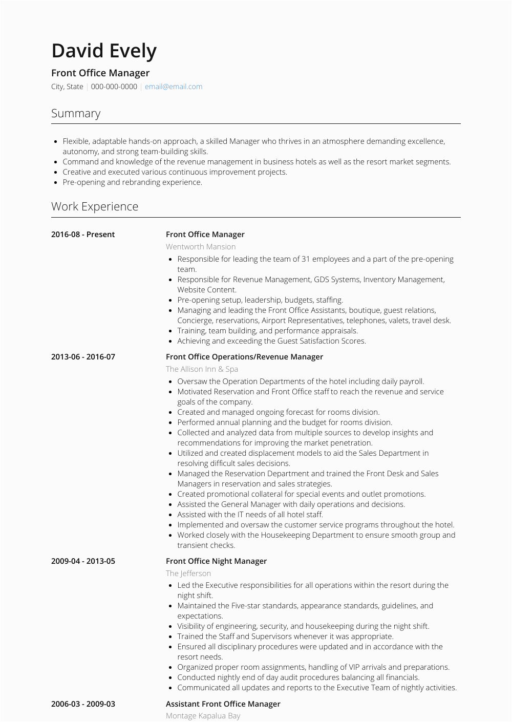 9 photos of the Front Office Manager at Hotel Sample Resume