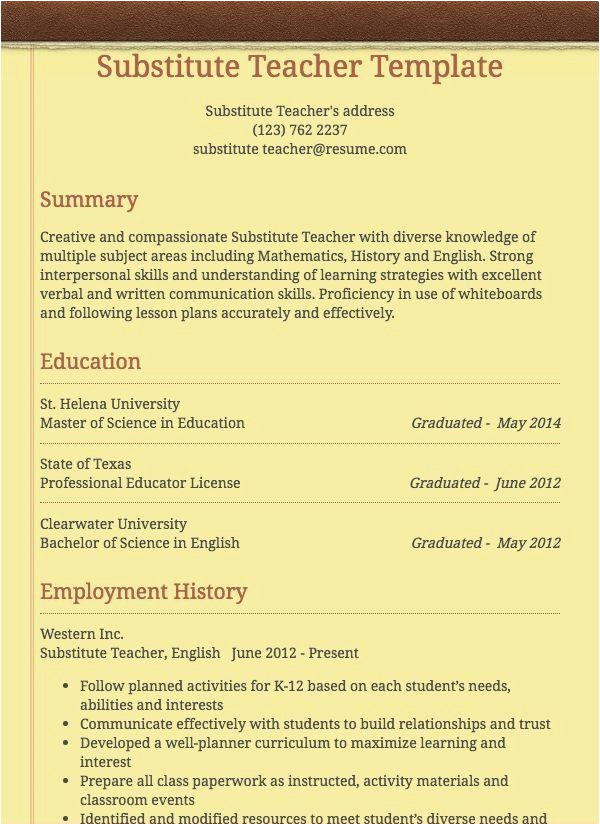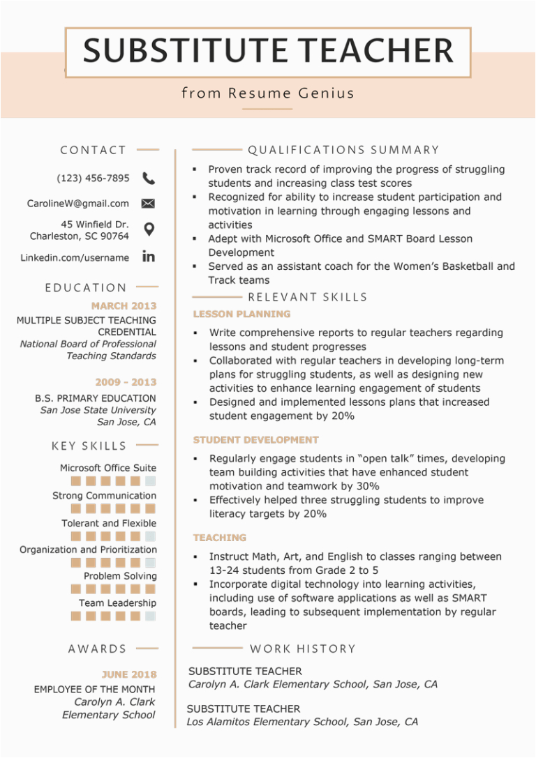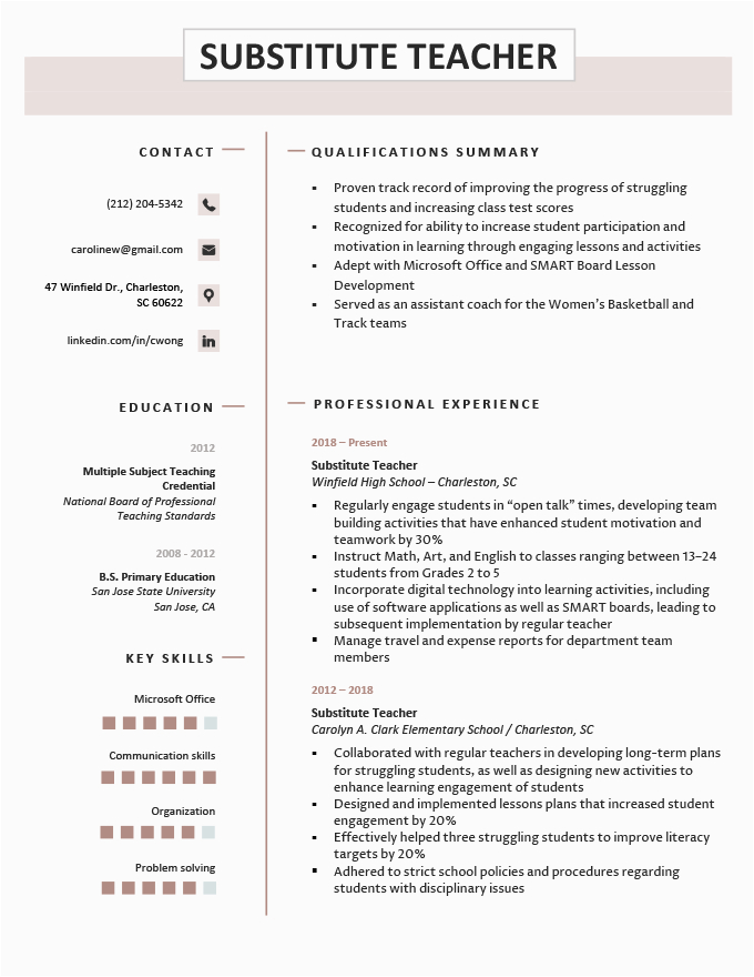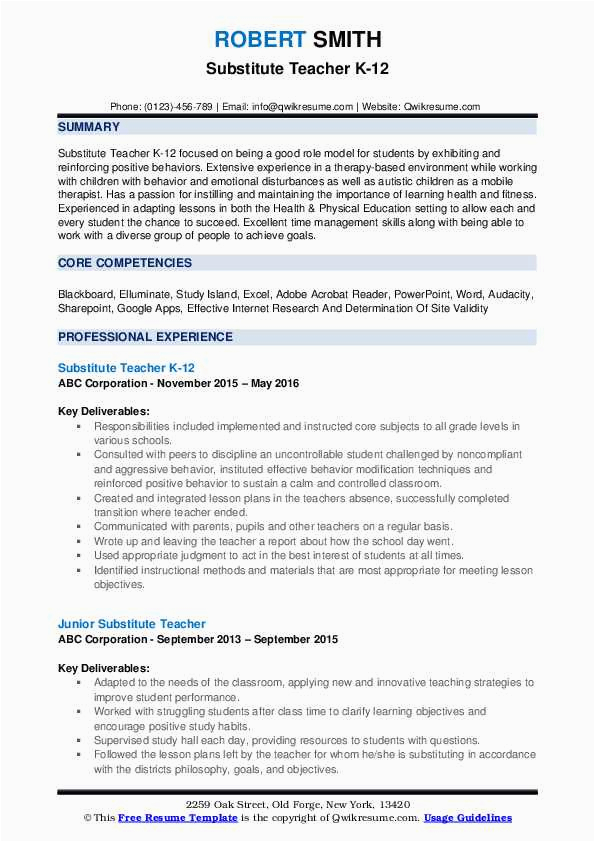 9 photos of the Functional Resume Sample for Substitute Teachers