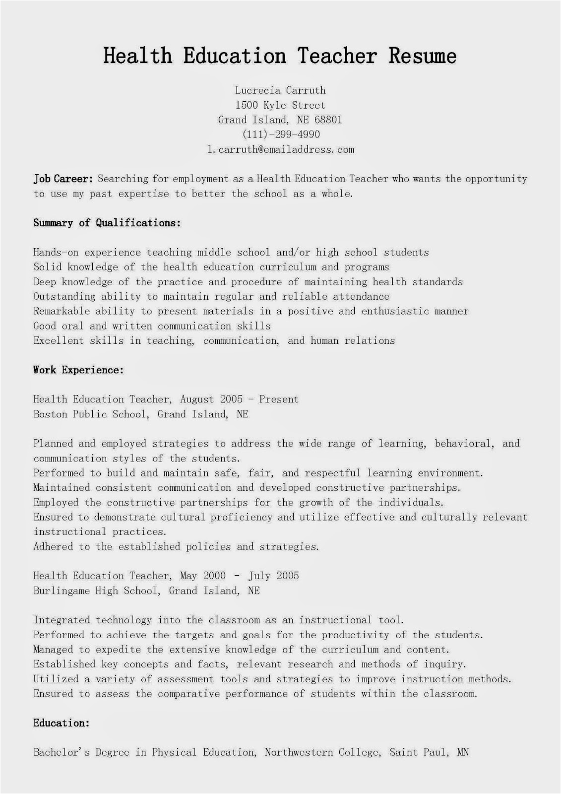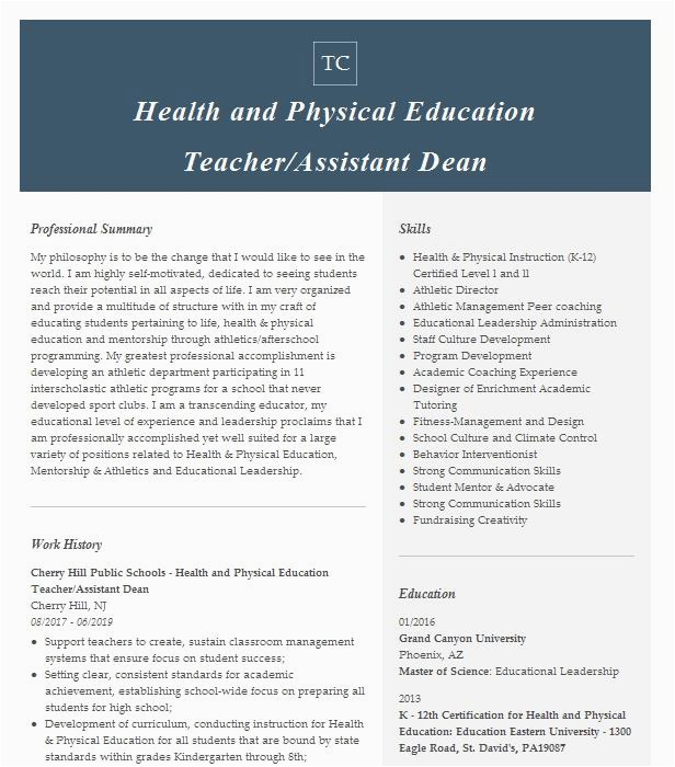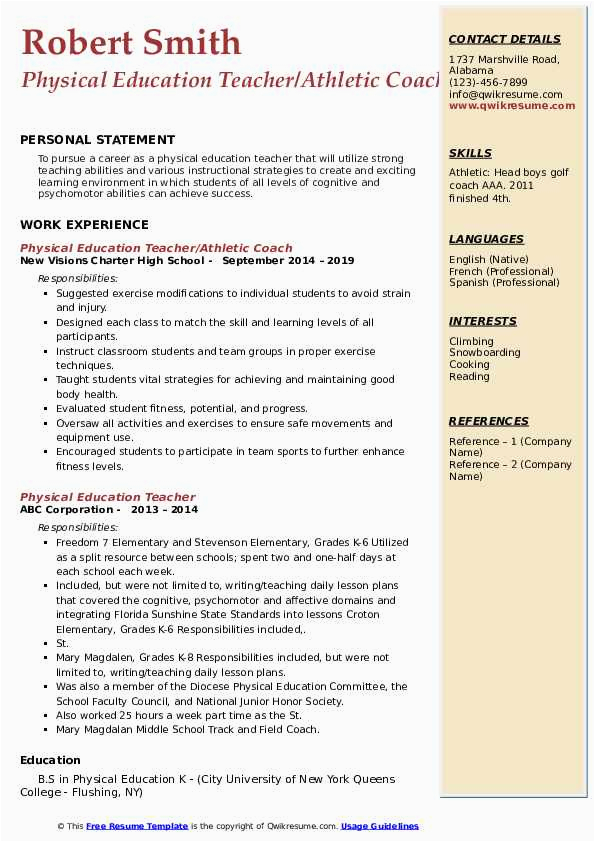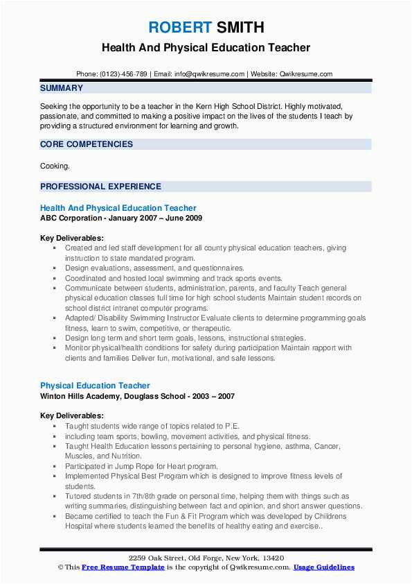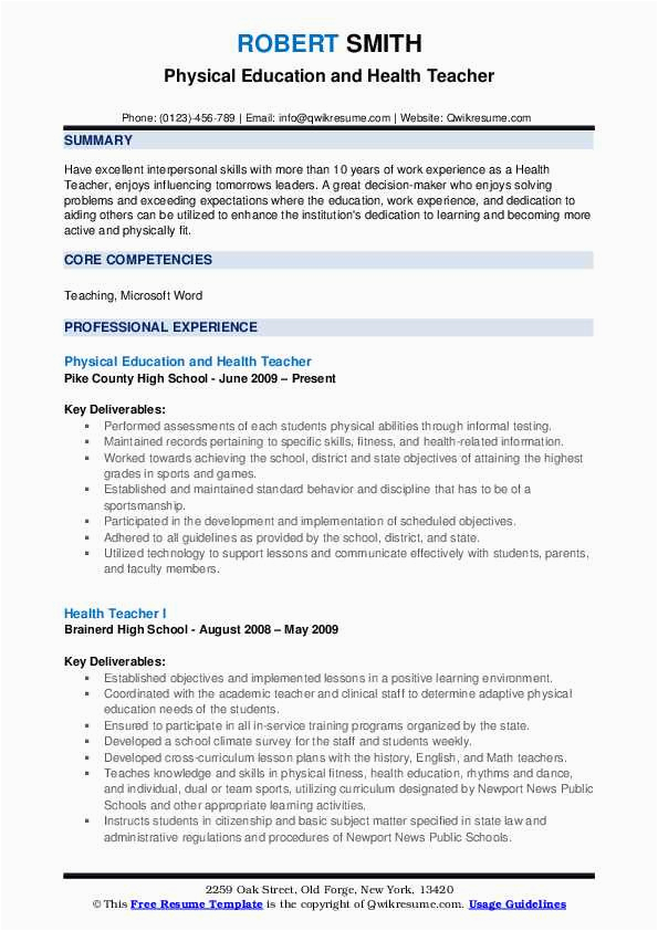 9 photos of the Health and Physical Education Resume Sample