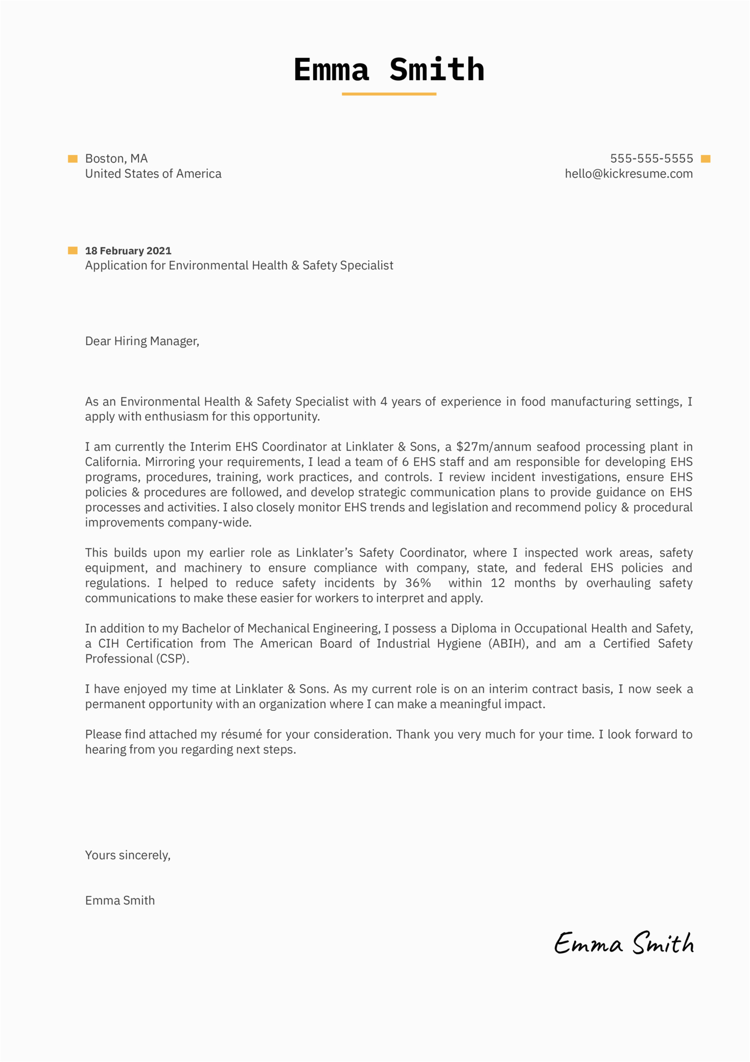 Health and Safety Resume Cover Letter Samples