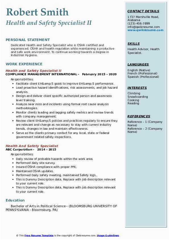 Warning: count(): Parameter must be an array or an object that implements Countable in /var/www/html/naturestudycentre.org/wp-content/themes/silegan-wordpress-theme/inc/themeson.class.php on line 625 Health and Safety Specialist Resume Sample Health and Safety Specialist Resume Samples