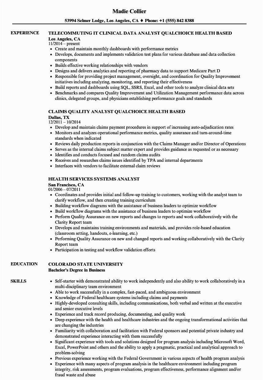 9 photos of the Health Care Management Systems Analyst Resume Samples