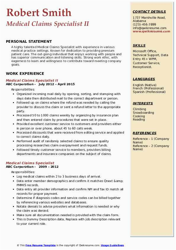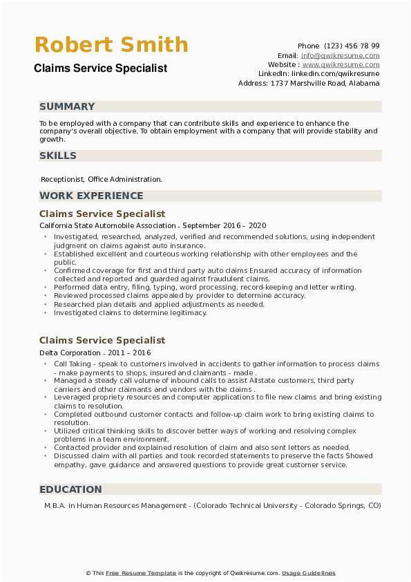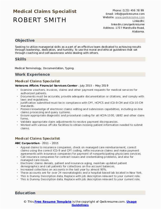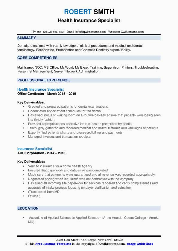 9 photos of the Health Insurance Claims Specialist Resume Sample
