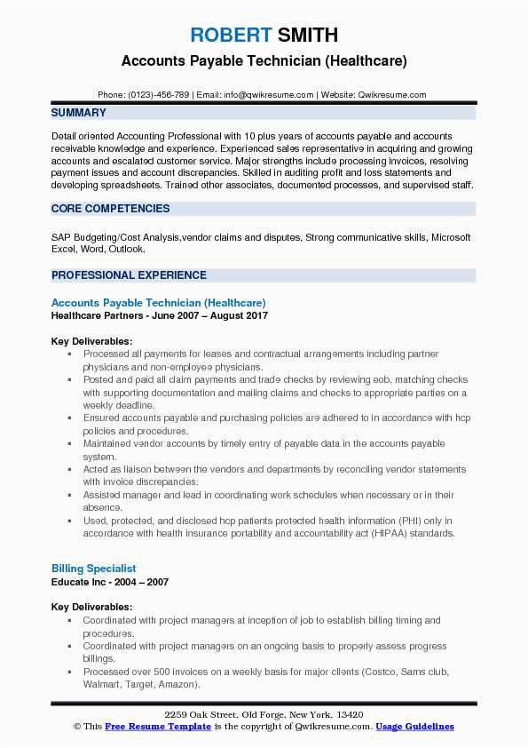 9 photos of the Healthcare Accounts Payable Rep Resume Samples