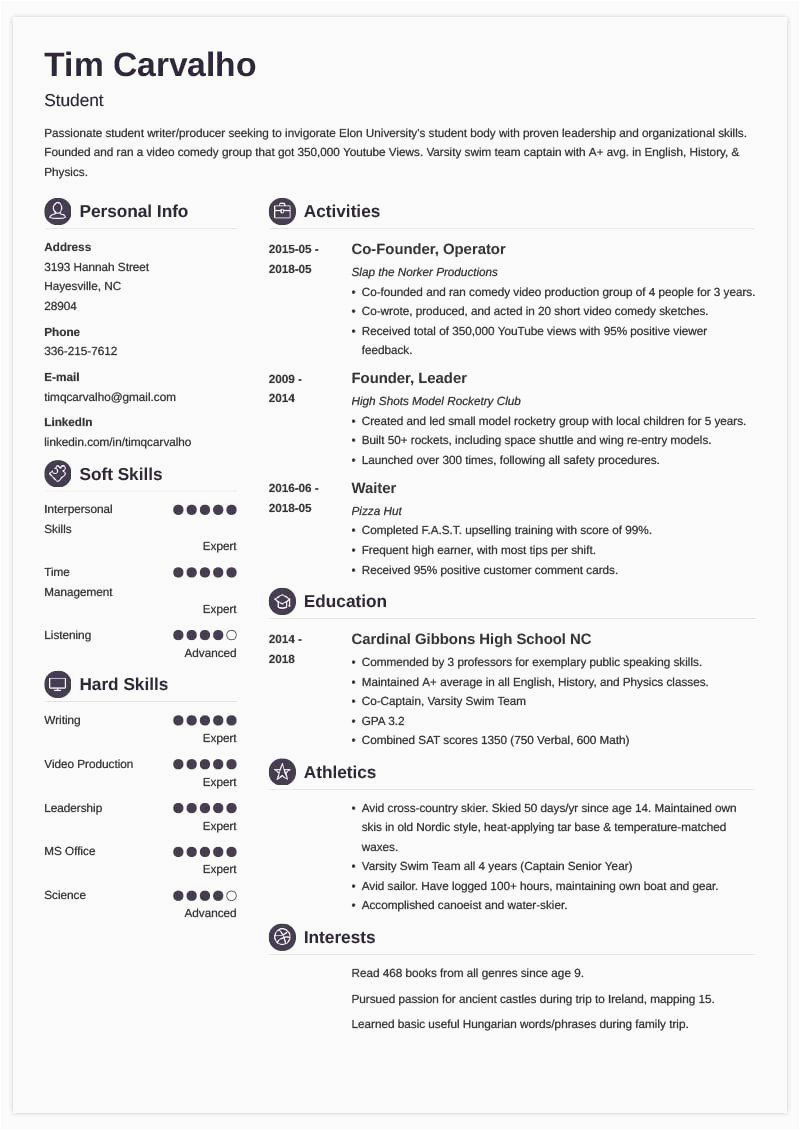 Sample College Application Resume For High School Seniors